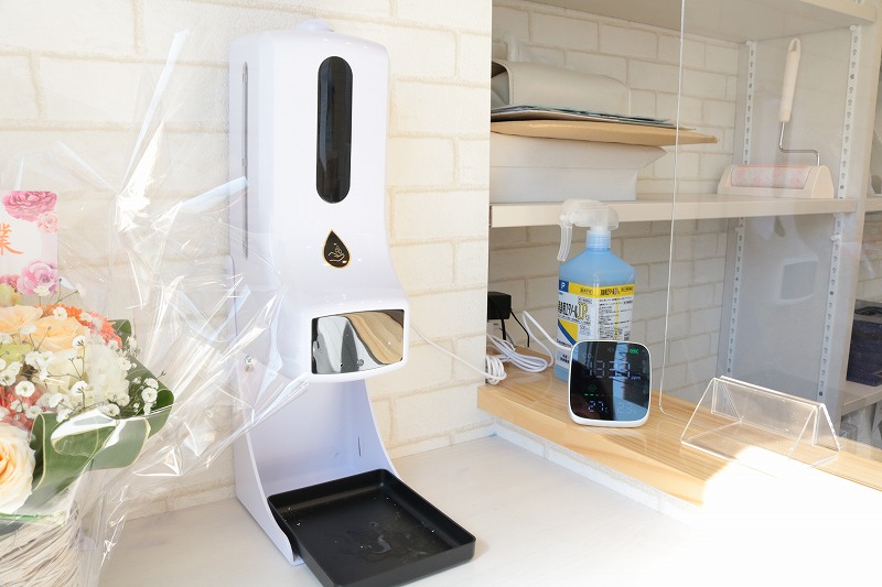 当院では新型コロナウイルス感染症予防対策として受付には検温器を設置し、患者様にはアルコール消毒にご協力いただいております。